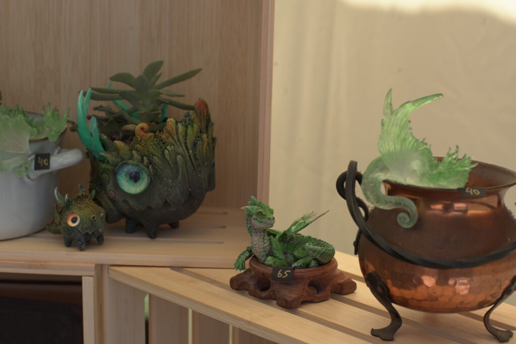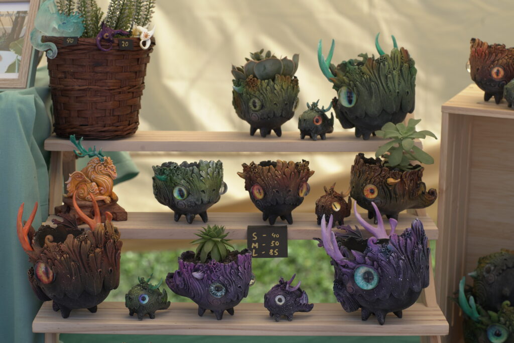 Certains Yulgurushes prennent la forme de petits pots, conçus pour protéger et transporter les jeunes plantes jusqu’à ce qu’elles soient prêtes à être replantées. Ces personnages témoignent de l’engagement de l’artiste envers la nature et de sa volonté de sensibiliser le public à la beauté et à la fragilité de notre environnement.