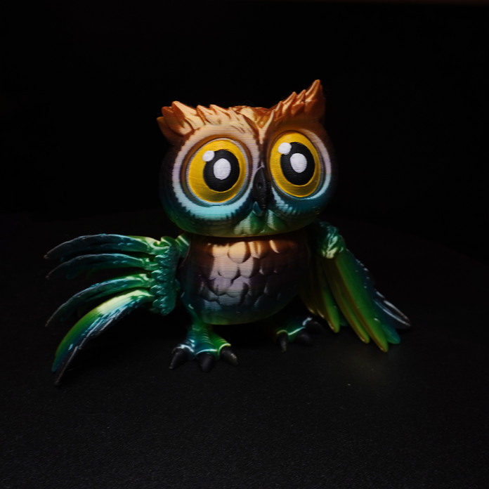 Cette statue de chouette, d’une hauteur d’une main, est bien plus qu’une simple représentation d’oiseau. Imprimée en PLA, un matériau biodégradable, la sculpture présente un dégradé de couleurs allant du chaud orange au bleu canard, créant une esthétique saisissante qui attire le regard.
